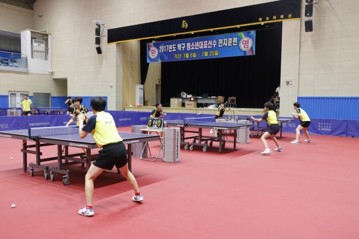 이번 국가대표팀은 2017년 아시아주니어 카뎃 탁구선수권 대회 출전 선수단과 중학교 순위에 따라 선발된 탑 랭커 등 남녀 모두 30명으로 꾸려졌다. 이들은 오는 25일까지 양희석 감독을 비롯한 코치진 5명과 함께 지난 4일 개관한 단양 매포체육관에서 기량점검을 실시하고 자체평가전을 치른다.탁구 청소년 국가대표팀 단양찾아 금메달을 향한 구슬땀