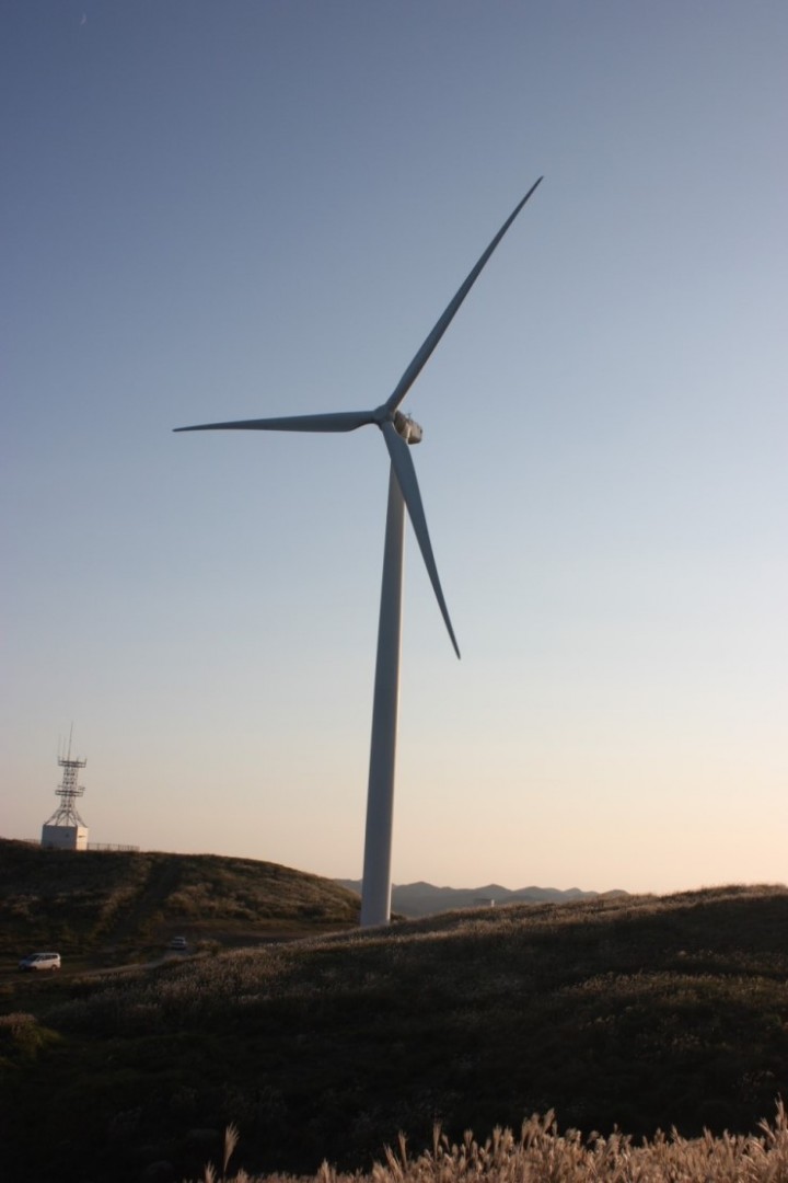 그리고는 이웃한 바다에 잠긴 도리이(문)가 멋진 해신을 모신 ‘와타즈미(和多都美)신사’를 둘러보고는 북쪽에 있는 ‘센뵤마키야마(千俵蒔山)’의 ‘풍력발전기’와 ‘바람의 언덕’ 및 ‘노을의 언덕’을 둘러보기 위해 출발했다. 생각보다 바람이 많이 불어서 옷을 단단히 입고 갔다.