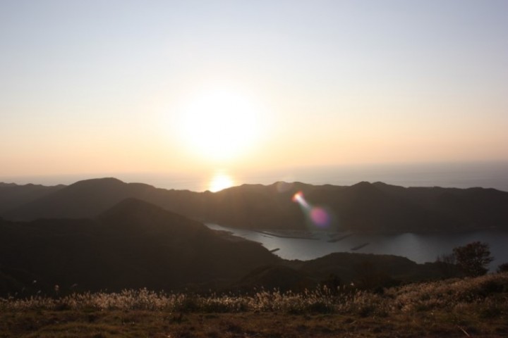 이곳은 예전에 봉화대가 있었고 한반도가 바로 보이는 곳이다. 오늘은 바람도 많고 풍광도 멋지다. 특히 첩첩히 보이는 산과 북쪽의 ‘사스나만’과 서쪽의 ‘사고만((佐護湾)’이 바람과 노을 등과 만나 장관을 연출하고 있다. 나는 특히 해질 무렵 사고만 쪽으로 떨어지는 노을이 좋아서 자주 이곳을 찾는 편이다.