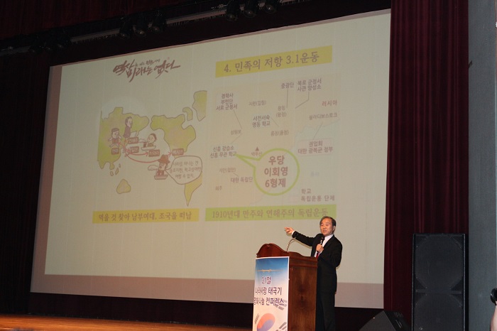 이어 세계평화를 위해 남녀노소 함께 동참을 호소하는 "태극기 정신 평화교육의 필요성과 선양의 중요성"을 알리는 (사)하늘문화세계평화광복 특별 영상이 상영되었다.