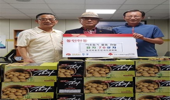 [인천타임뉴스-김민규 기자]동인천동 주민자치위원회(위원장 박영일)는 지난 26일 동인천동 지역사회보장협의체(위원장 오찬교)에 후원물품 감자(5kg) 70박스를 전달했다.