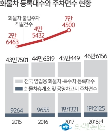 이들 주차장은 고속도로와 항만, 국도에 설치된 휴게소 28개소와 각 지자체의 공영차고지 18개소에 마련돼 있으며 각각 7342대와 4783대의 주차가 가능하다. 이는 시내 도로나 주택가 등의 화물차 불법 주차 문제를 낳고 있다.