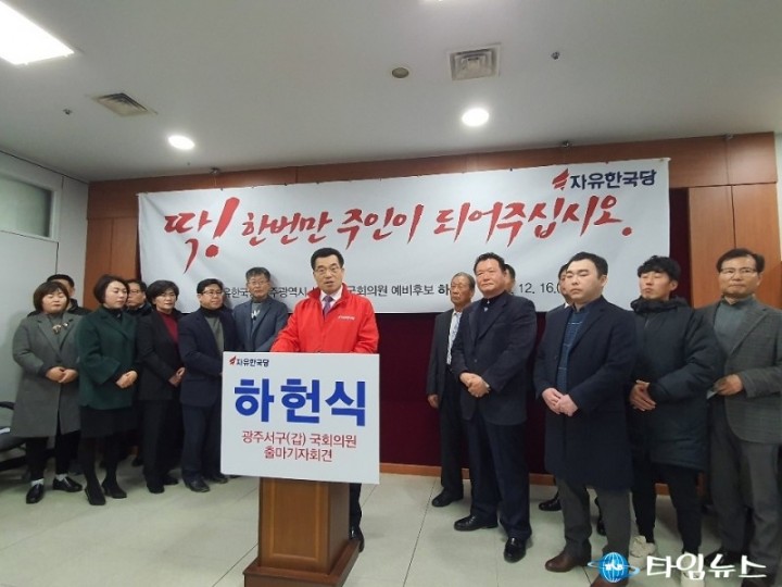 [광주 타임뉴스 = 나유란 기자] 지난 17일 광주광역시 시의회 기자프레스룸에서 자유한국당 서구갑의 당협위원장을 맡고 있는 하헌식 예비후보의 21대 국회의원 선거 출마 기자회견이 있었다.