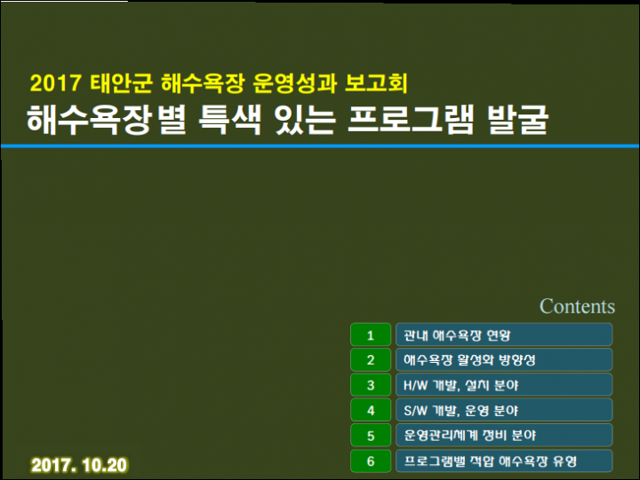 지난 2017년 10월 태안군 해수욕장 성과보고회는 “해수욕장별 특색 있는 프로그램 발굴" 관련 평가보고가 있었다. 보고서에 따르면 태안군내 28개 해수욕장 중 관광객 니즈에 맞출 수 있는 우수해수욕장은 10곳에 불과하다는 의견이다.