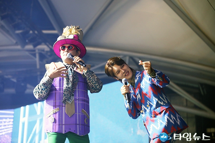 [대전타임뉴스=홍대인 기자] 그룹 노라조가 대전 중구 대흥동 우리들공원에서 열린 ‘대전 0시 뮤직페스티벌’ 2일차인 8일 공연을 하고 있다.‘대전 0시 뮤직페스티벌’은 7일부터 10일까지 은행동·대흥동 일원 원도심에서 지역경제에 활력을 불어넣고 관광도시로의 재도약을 위해 개최됐다.이번 행사는 내년 8월 개최 예정인 ‘대전 0시 축제’의 맛보기 행사로, 뮤직페스티벌·버스킹·길거리 공연·뉴트로거리·먹거리존 등의 다양한 볼거리와 먹거리 프로그램 등으로 진행된다.뮤직페스티벌은 대흥동 우리들공원에서 4일간 진행되며, 청하·소찬휘·다이나믹듀오·김희재 등 국내 최정상급 가수를 초청해, K-pop·뉴트로·힙합·트로트 등 4일 4색의 가을밤 음악 향연을 펼치게 된다.또한 지역 문화예술인들이 출연하는 버스킹과, 마술·판토마임·버블쇼 등의 길거리 공연이 행사장 곳곳에서 관객들과 호흡할 예정이다.