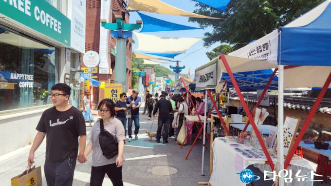 [안동타임뉴스] 남재선 기자 =안동시가 중구동 태사길 일대에 안동형 인사동 거리로 첫선을 보인 ‘태사길 프리마켓’에 20일 천여 시민과 관광객이 방문하며 새로운 핫 플레이스 조성의 기대감을 한층 끌어 올렸다.