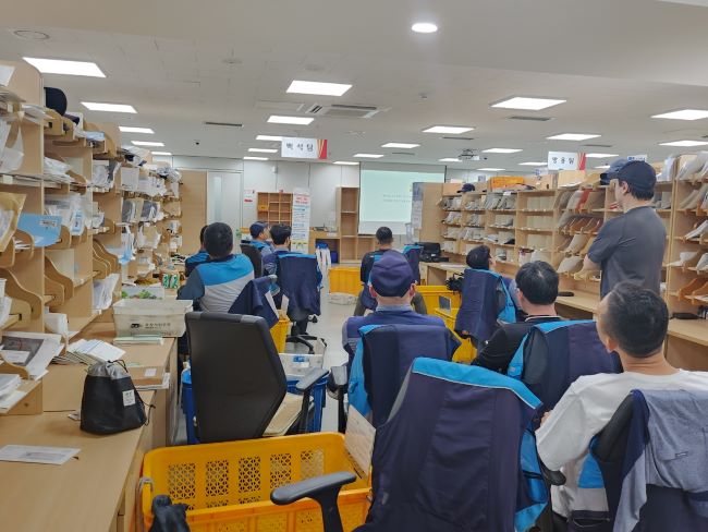 천안시가 24일 천안우체국에서 80여 명의 집배원을 대상으로 지역 내 복지사각지대 위기가구 발굴·지원을 위한 찾아가는 교육을 진행하고 있다.[사진=천안시]