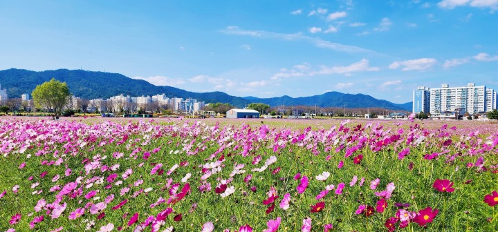 축구장 17개 넓이 12.3ha에 코스모스를 조성해 가을바람에 살랑이는 오색창연한 코스모스가 관람객의 발길을 끌고, 황화코스모스와 바람개비(야간 조명등)로 순천시 도시슬로건 ‘순천하세요!’를 연출해 이색적인 볼거리도 제공하고 있다.