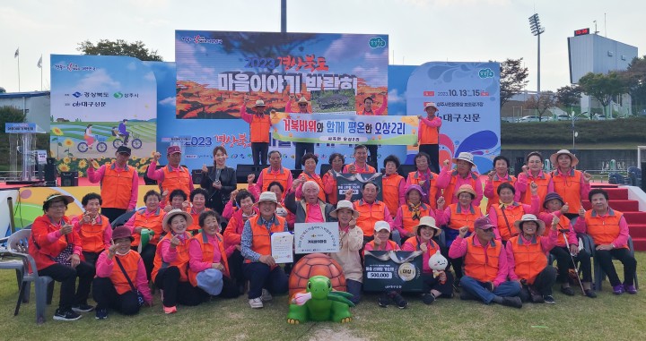 [의성타임뉴스] 김희열기자 = 의성군(군수 김주수)은 지난 13일부터 15일까지 3일간 상주시에서 개최된 '2023 경상북도 마을이야기 박람회' 에서 의성군 대표마을로 참가한 사곡면 오상2리(거북바위마을)가 도지사상인 우수상을 수상했다.