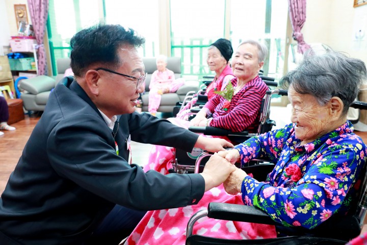 [울진타임뉴스] 김희열기자 = 울진군(군수 손병복)은 지난 7일 가정의 달을 맞이해 최고령 노인가구(108세)와 관내 요양원에 방문하여 카네이션 달아드리기 행사를 개최했다.