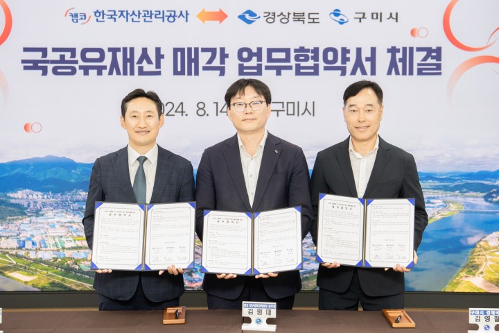[구미타임뉴스 이승근 기자] 구미시는 경상북도, 구미시, 그리고 한국자산관리공사(캠코)와 8월 14일(수) 시청 대회의실에서 유휴․저활용 국․공유재산을 효율적으로 매각하기 위해 공유지분권 일괄매각 업무협약을 체결했다.