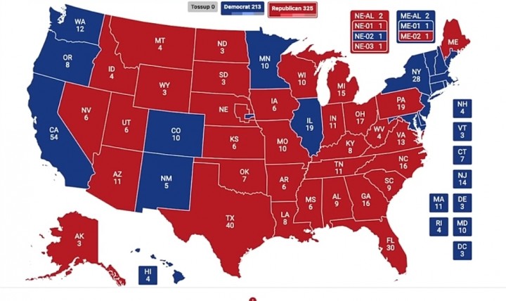 [타임뉴스=설소연기자]美 오프더 레코드(off-the-record)형 저널리즘에 속하는 Create Your Own Map에서 공개한 2024년 미 대선 지도에 따르면, 총528명의 선거인단 중 민주당 카멜라 해리스 226명보다 낮을 수 있으며 도널드 트럼프는 312명 이상 확보할 것으로 전망했다. 그러면서 도널드 트럼프 전 대통령 공약한 낙태금지, 불법이민자 단속 강화, 파리기후협약 탈퇴 등 이슈를 재조명했다.
