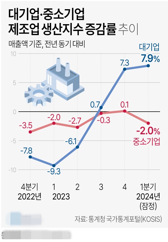 대기업·중소기업 제조업 생산지수 증감률 추이[그래픽]
