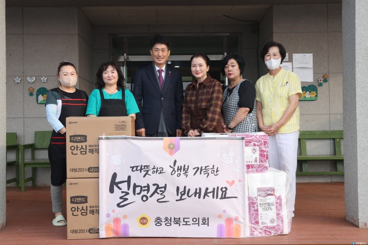 [충북타임뉴스=한정순 기자] 충북도의회(의장 이양섭)는 설 명절을 맞아 22일 진천군의 사회복지시설을 방문해 위문품을 전달하고 시설 종사자들을 격려했다. 이양섭 의장과 의회사무처 직원들은 진천군에 위치한 파랑새 요양원과 솔마루 요양원을 찾아 추운 날씨와 고물가로 어려움을 겪는 시설 관계자들의 애로사항을 청취하고 격려의 뜻을 전했다. 이양섭 의장은 “보이지 않는 곳에서 이웃을 위해 헌신하고 계신 모든 분들께 감사드린다"며 “앞으로도 어려운 이웃들에게 관심을 갖고 온정을 나누는 따뜻한 의정활동을 이어가겠다"고 했다.