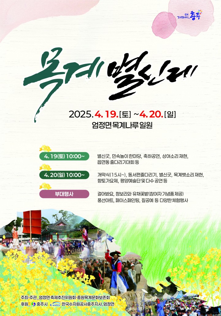 [충주타임뉴스=한정순 기자] 충주시의 대표적인 중원문화 민속축제인 ‘2025 목계별신제’가 오는 4월 19일부터 20일까지 이틀간 엄정면 목계나루 일원에서 열린다.