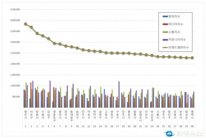 [청주시, 4월 브랜드평판 전국 기초자치단체 ‘1위’. 사진(4월 빅데이터 분석결과_출처 한국기업평판연구소)]