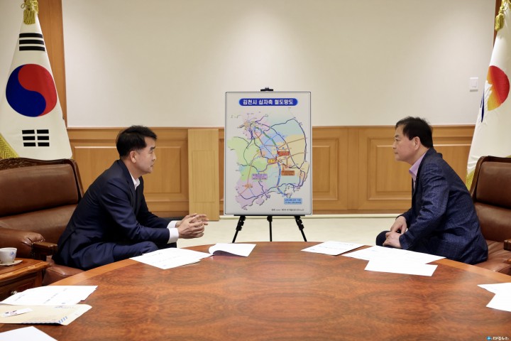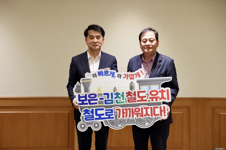 이번 방문은 지역 간 상생 발전과 국토 균형발전을 위한 철도 인프라 구축 필요성에 대해 인식을 공유하고자 마련된 자리로, 양측은 철도 노선 유치의 당위성과 기대 효과, 향후 공동 대응 방안 등에 대해 심도 깊은 논의를 이어갔다. 최 군수는 이 자리에서 “청주공항보은김천 철도는 단순한 교통 인프라를 넘어 양 지역의 물류·인적 교류 확대는 물론, 김천 시민의 공항 접근성 향상과 수도권 접근시간 단축 등 실질적 편익이 클 것"이라며 “보은과 김천의 상생 발전을 위한 필수 노선"이라고 강조했다. 그는 앞서 지난 3월 청주국제공항과 청주시청을 방문해 같은 노선에 대한 협조를 요청한 바 있으며, 이번 김천시 방문으로 충북과 경북을 잇는 광역 협력 체계를 보다 견고히 구축했다. 최 군수는 “이 철도 노선은 단순한 지역 연결을 넘어 대한민국 교통의 새로운 축이 될 것"이라며 “국가철도망 계획 반영과 조기 추진을 위해 관련 지자체와의 공조를 강화해 나가겠다"고 밝혔다.