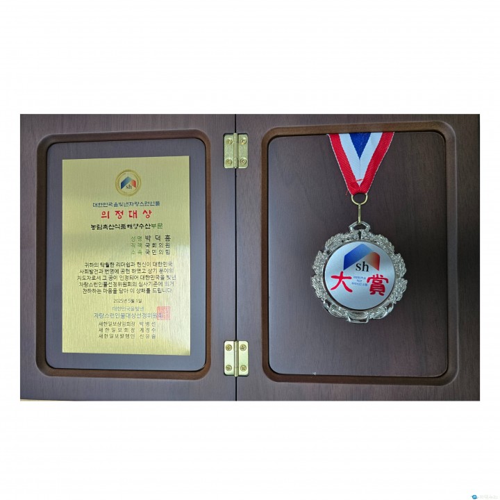 이번 수상은 박 의원이 국회 농해수위 위원으로서 농업·농촌 현안을 적극적으로 반영하고, 지역 맞춤형 공모사업 유치와 예산 확보 등 실질적인 성과를 이뤄낸 점이 높이 평가된 결과다. 박 의원은 19대부터 22대까지 4선 국회의원으로 활동하며, 무기질 비료 예산 확보, 농작물 재해보험 확대, 청년농촌보금자리 조성사업, 농촌협약 추진 등 굵직한 정책을 이끌어 지역 현안 해결에 앞장섰다. 박덕흠 의원은 수상 소감에서 “그저 동남4군의 발전을 위해 노력해왔을 뿐인데 큰 상을 주셔서 감사하다"며 “앞으로도 겸손하게 지역민과 소통하며, 농촌과 지역 발전을 위해 최선을 다하겠다"고 했다.