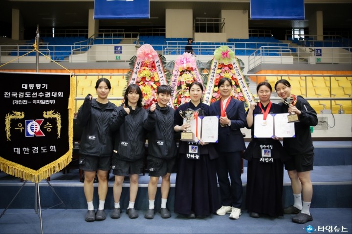 [경주타임뉴스=전찬익기자] 경주시청 여자검도팀(감독 박연정)은 지난 8일부터 11일까지 전북 익산시 익산실내체육관에서 열린 대통령기 제47회 전국실업검도대회에서 개인전 우승과 3위를 각각 차지하며 우수한 성적을 거뒀다.이번 대회는 2025년도 전문 선수로 등록된 선수들이 참가하는 전국 규모의 대회로, 중학부, 고등부, 일반부로 나뉘어 진행됐으며, 여자일반부에는 전국 10개 팀에서 총 30명의 선수가 출전했다.경주시청 여자검도팀은 감독 1명과 선수 6명이 출전했다.대회 2일 차에 열린 여자일반부 개인전에서 한하늘 선수는 준결승에서 광주 탑솔라 전지윤 선수를 연장전 한판승으로 꺾고 결승에 진출, 결승에서는 충남체육회 박시은 선수를 상대로 역시 연장전에서 머리 공격으로 한판승을 거두며 정상에 올랐다.차민지 선수도 3위에 올라 팀의 위상을 높였다.한편, 경주시청 여자검도팀은 지난 10일 열린 제63회 경북도민체육대회 검도 여자일반부 단체전에서도 우승을 차지하는 쾌거를 이뤘다.앞서 봉림기 전국실업검도대회에서 단체전 우승을 기록한 경주시청 여자검도팀은 이번 대회에서도 개인전 및 도민체전 모두에서 뛰어난 성적을 거두며 전국 실업검도계에서 강팀으로서의 입지를 굳혀가고 있다.주낙영 경주시장은 “꾸준한 훈련 끝에 값진 성과를 거둔 선수들이 매우 자랑스럽다"며, “스포츠 도시 경주의 위상을 전국에 알린 선수들과 지도자에게 깊은 감사의 마음을 전한다"고 밝혔다.