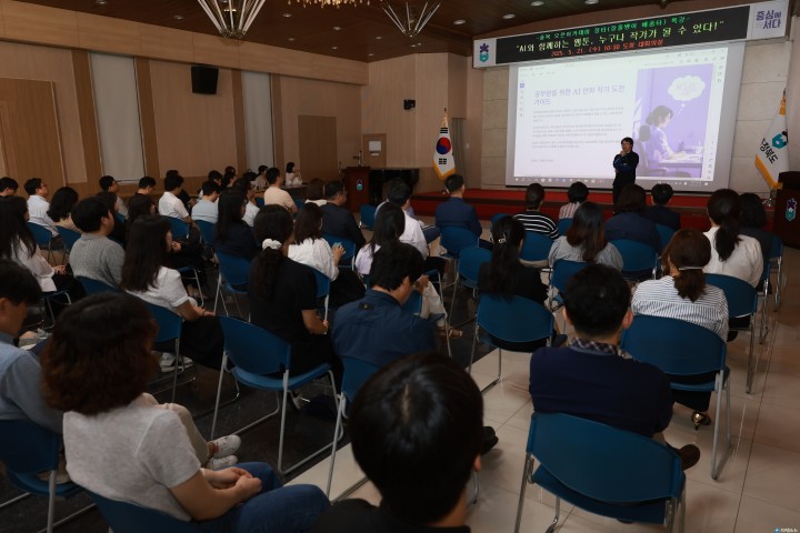 강연자로 나선 서정은 작가는 강남대학교 서양화과를 졸업하고, 『코믹 메이플스토리』, 『수학도둑』, 『쿠키런 어드벤처』 등 수천만 부의 누적 판매를 기록한 학습만화 시리즈를 기획·감수해 온 대한민국 대표 아동만화가다. 이날 특강에서는 ▲웹툰 제작의 전반적인 과정 ▲AI 기반 웹툰 제작 도구의 활용법 ▲충북도청을 배경으로 제작된 AI 웹툰 공개 등 다채로운 실전 콘텐츠가 소개돼, 참석자들의 큰 호응을 얻었다. ‘오픈아카데미 장터특강’은 ‘장돌뱅이 배움터’라는 부제를 달고 운영되는 도의 혁신 교육 프로그램으로, 공직자들의 창의력 향상과 정책 아이디어 발굴을 위한 지식 교류의 장으로 자리매김하고 있다. 김영환 충북도지사는 “AI 기술이 일상 속으로 빠르게 스며들고 있는 지금, 누구나 창작자가 될 수 있는 가능성을 확인하는 뜻깊은 자리였다"며 “공직자들이 디지털 창작 도구에 대한 이해를 넓히고, 새로운 도전의 계기를 갖기를 기대한다"고 했다.
