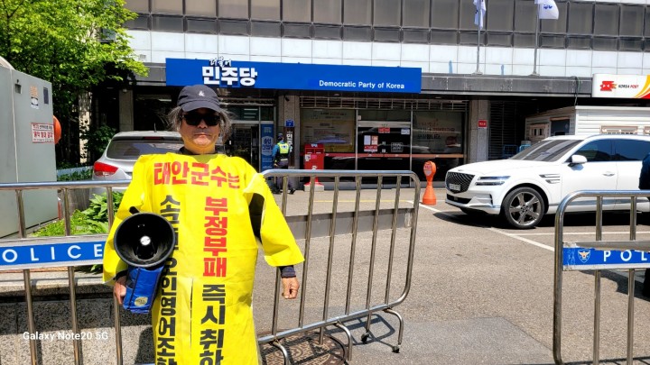 소원면 소근진 양식장을 운영하던 한 주민 또한 ‘신규 어업면허 승인이 불가한 축제식 양식장에 입법부의 법령을 개정해야 한다는 궤변과 함께 복군 32년 이래 최초의 허가를 승인해 준 태안군수’ 라고 성토하며 13개월 이상 시위에 나서던 중 소음폭행 및 집시법 위반행위로 고발 당하자 여의도 더불어민주당 당사로 상경해 현재 시위 중에 있다.