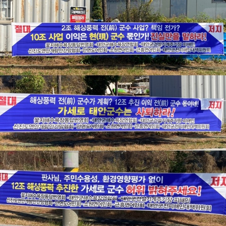 60여개 어촌계 회원 및 1,760여 대의 선단을 포함 14,000여 어민 및 어업중사자는 "분노가 치밀어 생업에 종사할 수 없을 정도라고 호소한다. 지난 34년간 관광수산 어젠다를 추진하면서 살기좋은 태안군으로 호평이 자자했으나 가세로 군수 입성 후 무슨 무슨 에너지산업단지를 구축하겠다고 어업인을 업신여기는 탓에 이제 봄 꽃게까지 관내 해역을 회피할 정도" 라며 恨을 토로했다.