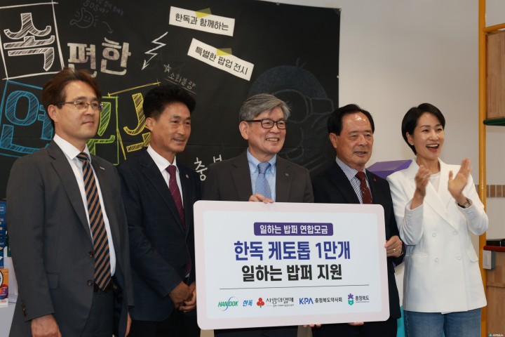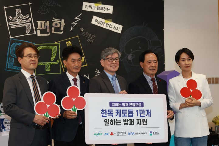 는 ㈜한독이 자사 의약품 ‘케토톱’을 기부하는 ‘일하는 밥퍼 참여자 의약품 지원 협약’이다. 충북도, 한독, 충북약사회, 충북사회복지공동모금회 간 체결된 이번 협약은 고령층과 취약계층이 생산적 자원봉사에 참여하는 충북도의 혁신 노인복지 정책 ‘일하는 밥퍼’에 참여하는 어르신들에게 파스를 무상 지원해 실질적 건강 복지를 도모하게 된다.