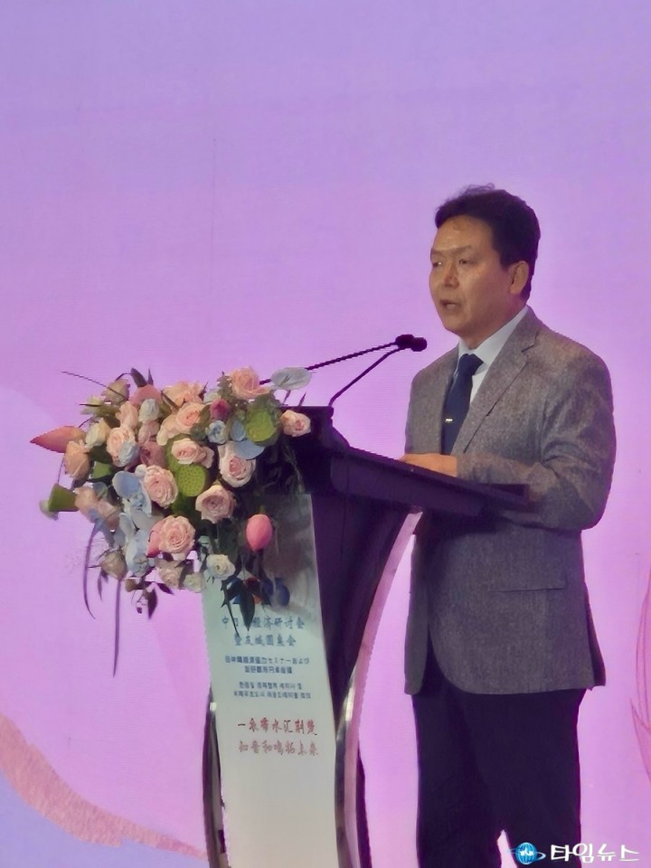 [2025 한중일 경제 심포지엄 참석(신병대 청주부시장이 17일 중국 후베이성 우한시 완다 렐름 호텔에서 개최된 한중일 지방정부 우호 교류회에서 축사를 하고 있다.)]