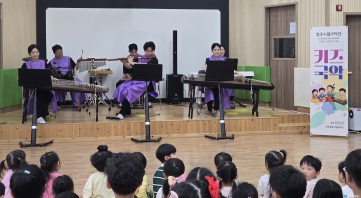 지난 5월 오창IS뽈리나어린이집을 시작으로 새청주유치원, 도담어린이집, 예아뜨유치원, 예광유치원, 꿀참나무숲유치원 등 총 6개 기관을 순회하며 △문어의 꿈 △참 좋은 말 △아빠 힘내세요 △동요 메들리(상어가족, 뽀로로, 티니핑) 등 아이들이 친숙하게 느끼는 곡을 국악기로 연주해 즐거움을 선사했다. 특히 공연 중간중간 국악기 소개와 간단한 해설을 곁들이며, 국악에 대한 이해와 흥미를 동시에 높이는 시간을 마련해 현장 호응을 얻었다. 청주시 관계자는 “올해 처음 선보인 ‘키즈국악’은 아이들이 국악에 친근하게 다가갈 수 있도록 기획된 프로그램"이라며 “앞으로도 공연 내용을 보완해 더 많은 어린이들에게 국악의 즐거움을 전할 수 있도록 하겠다"고 전했다. 청주시립국악단은 하반기에도 다양한 세대와 현장을 아우르는 국악 공연을 통해 지역 문화예술 저변 확대에 나설 계획이다.