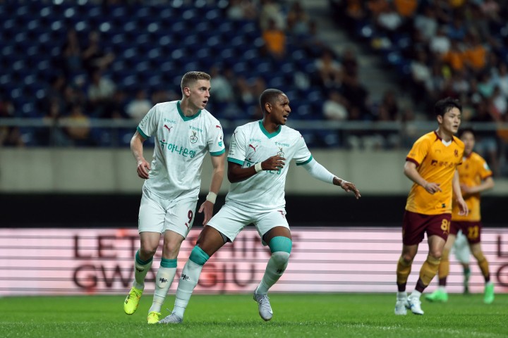 [대전타임뉴스=홍대인 기자] 프로축구 K리그1 2위 대전하나시티즌이 여름 이적시장 ‘폭풍 영입’의 효과를 안고 반등에 나선다. 대전은 27일 오후 7시 30분 대전월드컵경기장에서 열리는 ‘하나은행 K리그1 2025’ 21라운드 홈경기에서 제주 유나이티드와 맞붙는다. 대전은 현재 승점 34점(9승 7무 4패)으로 2위를 지키고 있으나, 최근 4경기 연속 무승(3무 1패) 부진에 빠져 있는 상황이다. 가장 최근 경기였던 광주FC 원정에서도 2-2로 비겼다. 에르난데스가 두 개의 도움을 기록하고, 구텍이 멀티골을 터뜨리는 활약을 펼쳤지만 끝내 승리를 거두지 못했다. 이로써 대전은 지난 5월 대구전 승리 이후 리그 4경기에서 승리를 거두지 못하고 있다. 무승 속에서도 대전은 2위를 유지하고 있지만, 선두 전북 현대와의 격차는 벌어졌고 3위권 팀들의 추격도 거세지고 있어 반등이 시급한 상황이다. 이를 위해 대전은 여름 이적시장에서 여승원, 김봉수, 서진수, 에르난데스, 김진야를 새롭게 영입했고, 최근에는 국가대표 출신 왼쪽 풀백 이명재까지 품으며 전력을 대폭 보강했다. 김봉수와 서진수, 에르난데스는 선발과 교체로 경기에 투입되고 있으며, 김진야는 직전 광주전에서 데뷔전을 치렀다. 폭넓어진 스쿼드는 경기 운영의 유연성과 경쟁 구도 강화에 기여하고 있으며, 팀에 신선한 자극을 주고 있다. 김병수 감독 체제에서 빠르게 조직력을 끌어올린다면 다시 선두 경쟁에 불을 붙일 수 있을 것으로 기대된다. 상대 제주 유나이티드는 최근 3연승 이후 2연패를 기록 중이다. 대전은 지난 제주와의 시즌 첫 맞대결에서 주민규, 정재희, 이준규의 연속골로 3-1 완승을 거두며 원정 징크스를 깬 바 있다. 최근 제주의 상승세가 꺾인 가운데, 대전은 좋은 기억을 발판 삼아 다시 흐름을 되찾겠다는 각오다. 김제선 감독은 “영입 선수들이 빠르게 적응하면서 팀 분위기가 좋아지고 있다"며 “이번 경기를 통해 분위기를 반전시키고 팬들에게 승리를 안기겠다"고 밝혔다.