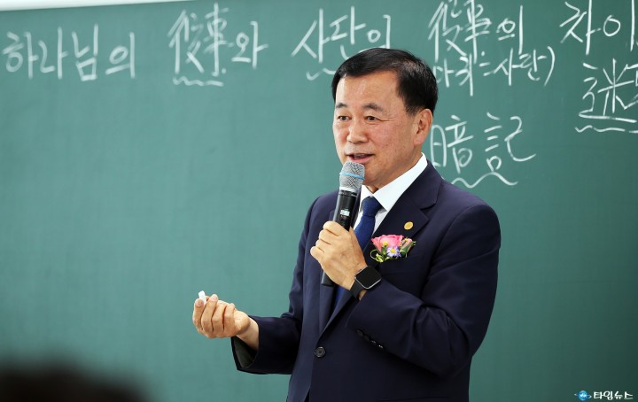 [충북타임뉴스=한정순 기자] 충북 옥천 하늘동산에서 지난 28일 열린 제6회 위아원 목회자 세미나에서 신천지예수교 증거장막성전 맛디아지파 대전교회(담임 장방식, 이하 신천지 대전교회) 장방식 강사가 성경에 나타난 하나님의 역사와 사단 역사의 차이를 주제로 강연을 펼쳤다.
