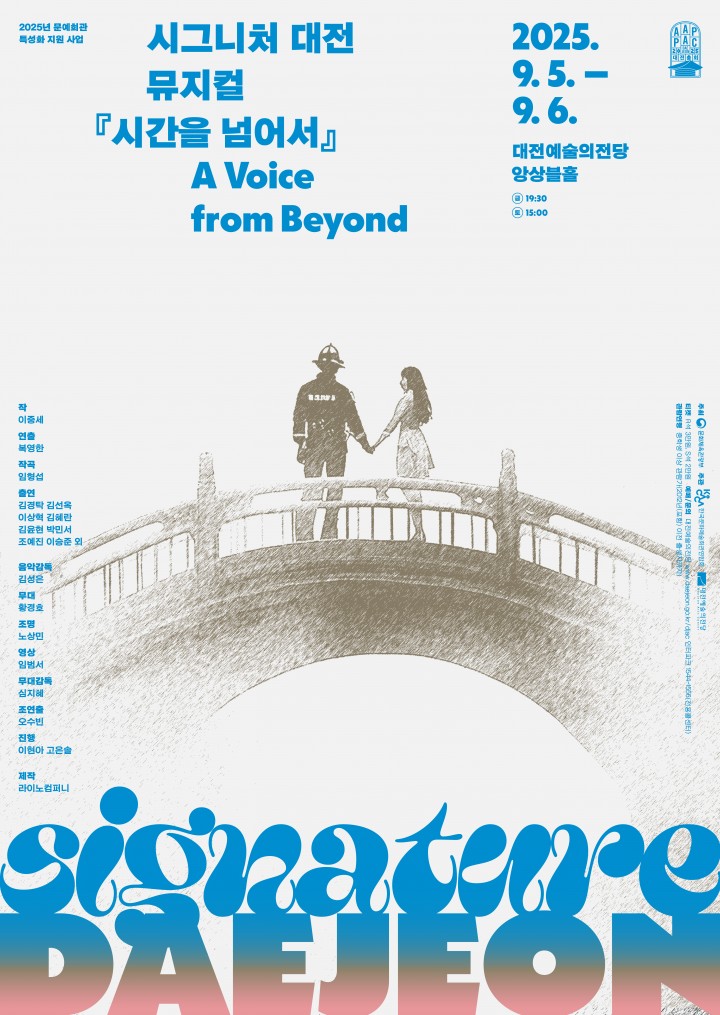 [대전타임뉴스=홍대인 기자] 대전예술의전당(관장 김덕규)이 문화체육관광부가 주최하고 한국문화예술회관연합회가 주관하는 ‘2025 문예회관 특성화 지원 사업’에 최종 선정됐다. 이번 사업에는 전국 61개 작품이 응모했으며, 이 중 단 10개 작품만이 최종 선정됐다. 대전예술의전당은 극단 라이노컴퍼니와 공동 제작하는 창작뮤지컬 ‘시간을 넘어서’를 통해 본 사업에 이름을 올렸다. 당초 2,000만 원의 1차 지원금에 이어, 이번 최종 선정으로 7,000만 원을 추가 확보해 총 9,000만 원의 국비를 받게 됐다. 이와 별개로 대전예술의전당은 예술경영지원센터가 주관한 또 다른 국비지원사업에서 5개 작품이 선정된 바 있다. 이번 선정작을 포함하면 2025년 국비 지원 대상 공연은 총 6편이며, 확보한 국비 규모는 3억 4,800만 원에 이른다. 창작뮤지컬 ‘시간을 넘어서’는 화재 현장에서 목숨을 잃은 한 소방관이 사후에 다시 삶의 문을 넘으며 사랑과 인연을 돌아보는 이야기로, 오는 9월 5일과 6일 양일간 대전예술의전당 무대에 오른다. 이승과 저승을 넘나드는 독창적인 연출과 15곡 이상의 뮤지컬 넘버, 생생한 캐릭터가 관객의 감성을 자극할 예정이다. 김덕규 대전예술의전당 관장은 “이번 사업 선정을 통해 지역 예술인의 창작 역량을 전국 무대에서 입증했다"며 “앞으로도 자체 제작 역량을 높이고 지역예술단체와의 협업을 강화해 대전 문화예술의 다양성과 경쟁력을 높여가겠다"고 밝혔다. ‘시간을 넘어서’ 공연 티켓은 R석 3만 원, S석 2만 원이며, 예매 및 자세한 사항은 대전예술의전당 홈페이지[www.daejeon.go.kr/djac] 또는 전화(042-270-8333)로 확인 가능하다.