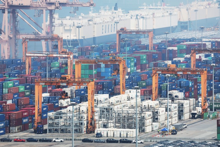 상호관세 앞두고 이달 초 경기 평택항에 쌓인 컨테이너