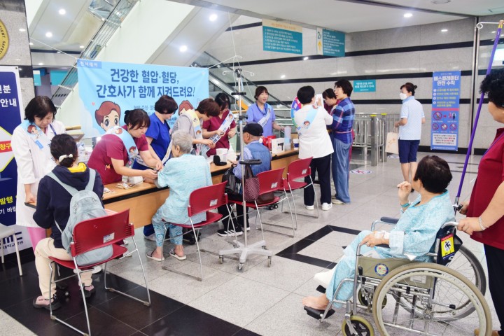 [대전타임뉴스=홍대인 기자] 대전을지대학교병원(원장 김하용)은 ‘천사(1004)데이’를 앞둔 2일 오전 10시부터 병원 1층 로비와 택시 승강장에서 봉사활동과 기념행사를 열었다. 병원 간호사회(TENA) 주최로 마련된 이날 행사에서는 환자와 보호자, 내원객, 택시 기사 등을 대상으로 무료 혈압·혈당 측정이 진행됐다. 간호사들은 검사 결과에 따라 맞춤형 건강 상담을 제공해 시민들의 큰 호응을 얻었다. 행사장에서는 건강 관련 O/X 퀴즈와 추첨 이벤트도 함께 진행돼 안마기, 추석 선물 세트 등 다양한 경품이 전달됐다. 참여자들은 즐겁게 건강 정보를 배우고, 따뜻한 명절 인사를 나누는 시간을 가졌다. 김하용 병원장은 “천사데이는 시민과 함께하는 나눔의 날"이라며 “앞으로도 환자와 지역사회를 위한 다양한 사회공헌 활동을 지속해 나가겠다"고 밝혔다.