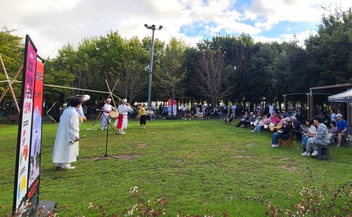 [광주타임뉴스=오현미 기자] 광주문화재단이 추진하는 ‘찾아가는 문화공연-당신곁에’가 지난 4일 광산구 운남근린공원 근처 잔디밭에서 진행됐다. 이날 무대에는 타악그룹 언락이 참여해 흥겨운 전통연희와 사자춤, 줄타기 공연으로 관객들의 뜨거운 호응을 얻었다.