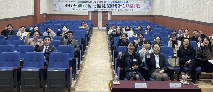 [진도타임뉴스=오현미 기자] 전남 진도교육지원청은 최근 진도예술영재교육원 예술마루에서 교원과 학부모 40여 명을 대상으로 ‘진도예술영재교육원 영재교육대상자 선발을 위한 GED 연수 및 영재교육 설명회’를 개최했다. 이번 행사는 영재교육 선발 과정의 공정성과 신뢰성을 높이기 위해 GED(영재성 평가 데이터베이스) 시스템을 중심으로 실무 연수를 진행했다. 학부모에게는 끼와 재능을 가진 학생들이 영재교육원에서 활발히 활동할 수 있도록 안내하고 홍보하는 취지로 마련됐다. 특히, 이번 행사에서 진도예술영재교육원을 수료한 진도국악고등학교와 국립전통예술고등학교 재학생들이 전통공연을 선보이며, 영재교육원의 교육성과를 직접 보여주는 뜻깊은 시간을 가졌다. 이어 현재 재학 중인 학생들의 공연도 이어져 미래 예술인의 잠재력을 엿볼 수 있었다. 공연 후에는 선배와의 대화 시간을 통해 학생들이 진로와 진학에 대한 조언을 받았으며, 학부모들은 진도예술영재교육원의 교육과정과 특색 있는 활동에 대해 보다 깊이 이해하는 시간을 가졌다. 행사 말미에는 영재교육원 발전 방향과 건의사항을 청취하며 내년도 운영에 대한 발전적인 계획을 공유했다. 연수에 참여한 교사들은 “학생 개별 관찰을 기반으로 한 선발 절차가 보다 명확해졌다"고 평가했다.학부모들도 역시 “재학생과 졸업생들의 실력을 직접 확인할 수 있어 유익했다. 앞으로 진도예술영재교육원이 진도국악고, 국립남도국악원으로 이어지는 관문이 되길 기대한다"고 전했다. 김 미 교육장은 “진도예술영재교육원은 자연영재뿐만 아니라 전통예술 분야의 영재를 육성하는 특별한 교육기관을 갖춘 지역이다. 우리 영재교육원의 특성을 살려 지역 예술의 기반을 다지고, 국악고 및 국립남도국악원과 연계된 선순환 시스템을 통해 진도만의 예술 영역을 더욱 확장해 나가겠다"고 밝혔다.