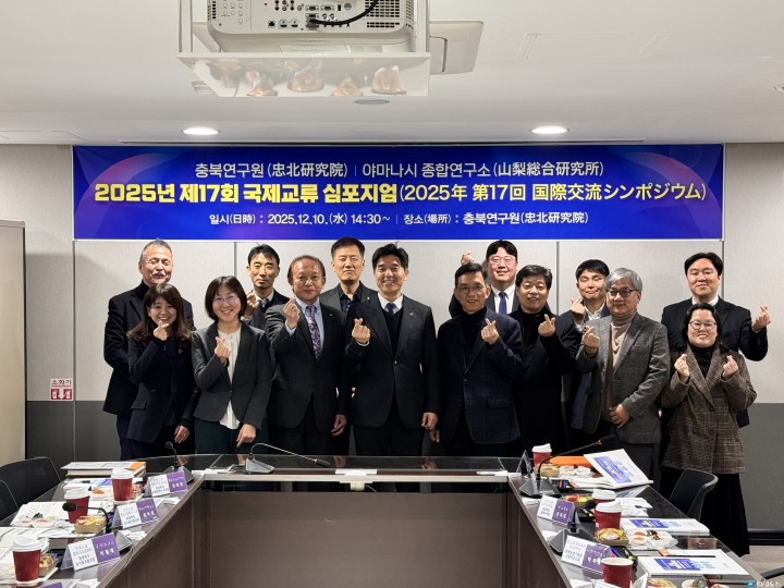 [충북타임뉴스=한정순 기자] 충북연구원과 일본 야마나시종합연구소가 10일 청남대 일원과 충북연구원 중회의실에서 ‘지역농업의 지속가능성과 가치창출’을 주제로 제17회 국제교류 심포지엄을 개최했다. 양 기관은 변화하는 농업 환경 속에서 지속가능한 농업 전환 전략을 모색하며 협력 기반을 다졌다.