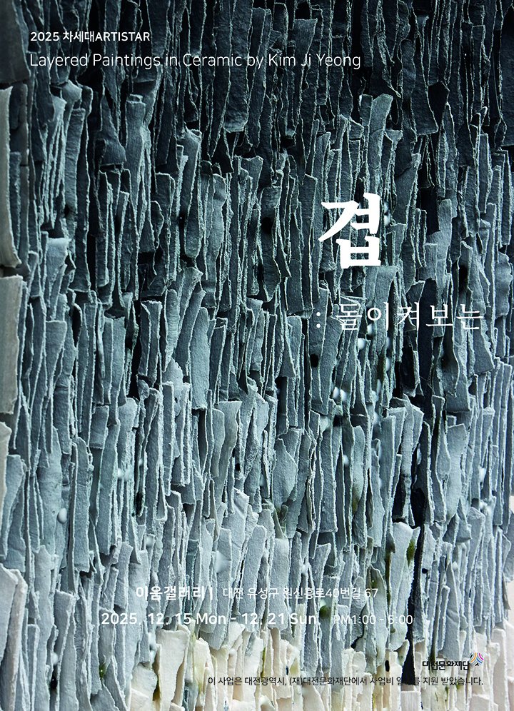 [대전타임뉴스=홍대인 기자] 대전문화재단이 운영하는 차세대 artiStar 지원사업에 선정된 청년도예가 김지영 작가의 개인전 ‘겹’이 15일부터 21일까지 대전 이음갤러리에서 열린다. 이번 전시는 작가가 삶과 작업 전반을 관통하는 핵심 개념인 ‘겹’을 조형 언어로 풀어낸 작품들을 중심으로 구성됐다. 전시 타이틀인 ‘겹’은 일상에서 축적되는 감정과 경험이 시간의 층위를 이루듯, 흙이라는 재료가 불과 시간을 거치며 형성하는 자연적 변화의 결을 의미한다. 김 작가는 흙이 서로 충돌하고 스며들며 제 질서를 만들어가는 과정을 통해 사라짐과 남음, 상실과 채움이 교차하는 순간을 작품에 담았다. 작품 표면에 남겨진 수많은 ‘겹’은 시간의 흔적이자 감정의 결로, 관람객이 자신의 삶 속에 쌓여온 시간을 되돌아보게 하는 매개로 설정됐다. 김지영 작가는 “표면에 남겨진 겹을 통해 각자의 기억 속에 쌓여온 시간을 떠올리길 바란다"고 말했다. 김지영 작가는 목원대학교 도자디자인학과와 동 대학원을 졸업하고 공주대학교 도자문화융합디자인학과 박사과정을 수료했다. 대한민국미술대전, 대전시공예품대전 등에서 입선 및 수상 경력을 쌓았으며, 개인전과 아트페어 등 활발한 창작활동을 이어가고 있다. 한편, 대전문화재단의 차세대 artiStar 지원사업은 지역 청년예술인의 창작 및 발표 활동을 집중 지원해 신진 예술가의 성장 기반을 마련하는 프로그램이다.