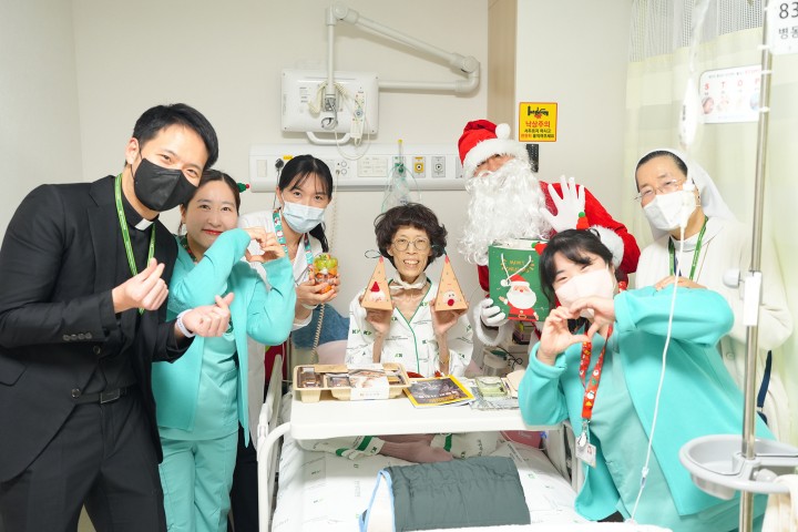 [대전타임뉴스=홍대인 기자] 건양대병원이 연말을 맞아 호스피스병동 환우들을 위한 산타클로스 위문행사를 마련했다. 의료진은 병실을 직접 찾아 환자와 가족에게 위로와 희망의 메시지를 전했다. 건양대병원은 26일 크리스마스와 연말을 맞아 말기 암 환자와 가족을 위로하기 위한 산타클로스 위문행사를 진행했다. 이번 행사는 투병 생활로 지친 환우들에게 따뜻한 정서적 위로를 전하고 특별한 추억을 선사하기 위해 매년 이어지고 있다. 김근수 호스피스완화의료센터 파트장을 비롯한 의료진은 산타 복장을 하고 병실을 방문했다. 의료진은 정성껏 준비한 사랑의 선물을 환자 한 명 한 명에게 전달하며 짧지만 의미 있는 시간을 함께했다. 이날 병원 성당 김재준 신부도 행사에 동참해 환자와 보호자에게 축복과 위로의 메시지를 전했다. 병실마다 웃음과 감사의 인사가 오가며 환자와 가족의 표정에도 오랜만에 미소가 번졌다. 조도연 호스피스완화의료센터장은 이번 행사가 환자와 가족에게 작은 위로가 되길 바란다고 밝혔다. 건양대병원은 앞으로도 호스피스 환자와 가족을 위한 정서적 지지와 돌봄 프로그램을 지속적으로 운영할 계획이다.