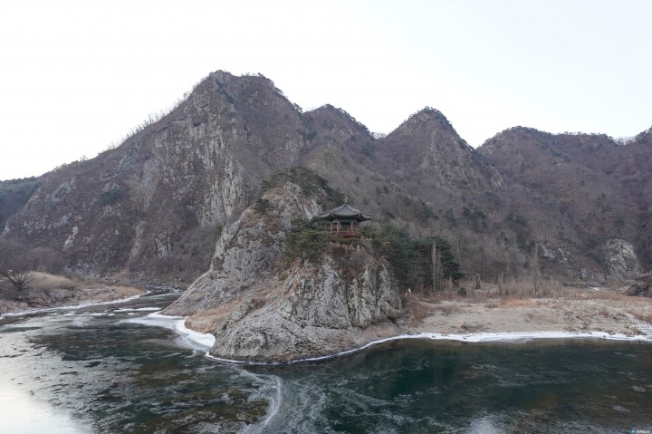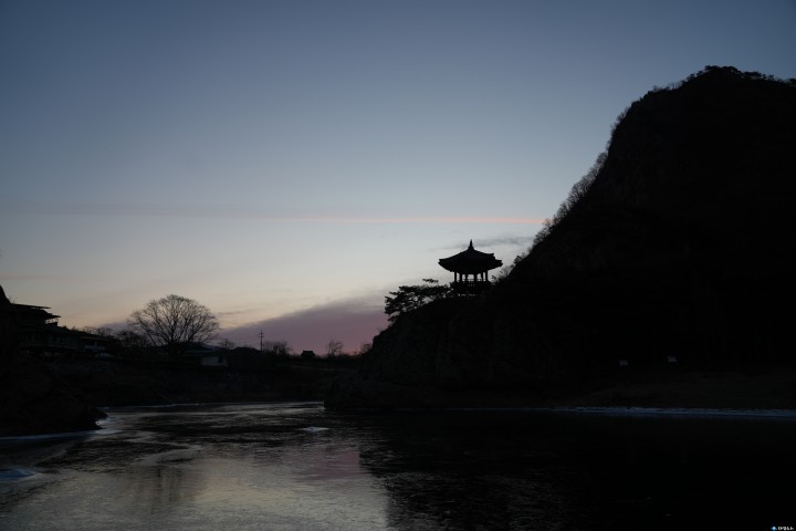 차가운 겨울 공기 속에서도 강물은 잔잔히 흐르고, 바위 틈 사이로 스며든 햇살은 얼어붙은 수면 위에 은은한 빛의 결을 만들어내며 하루의 시작을 알린다. 어둠과 빛이 교차하는 찰나의 순간은 보는 이로 하여금 자연 앞에 잠시 발걸음을 멈추게 한다.