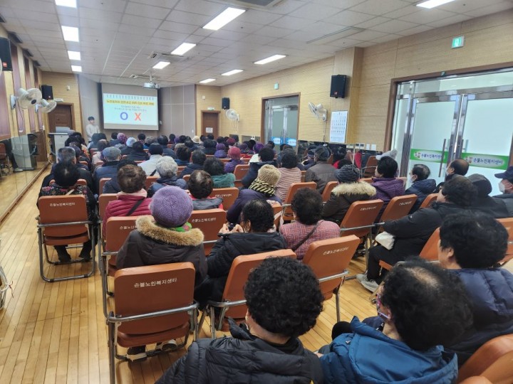 [함평타임뉴스=오현미 기자] 전남 함평군 손불면은 지난 16일 손불면 노인복지센터에서 노인일자리 사업 참여자를 대상으로 안전교육 및 직무 설명회를 실시했다고 밝혔다.이번 사업은 수요처를 적극 발굴한 결과 전년 대비 8명이 증가해 총 95명이 참여한다. 새롭게 일자리를 시작한 어르신들은 사회활동 참여를 통해 활기찬 노후 생활을 이어갈 예정이다.교육은 수요처 특성에 따른 활동 방법을 숙지하고, 업무 수행 과정에서 발생할 수 있는 각종 사고를 예방할 목적으로 실시했다.노인일자리 사업 참여자 눈높이에 맞춘 동영상 시청과 사고 사례 중심의 OX 퀴즈 방식으로 진행됐으며, 활동 중에 발생할 수 있는 위험 요소와 대처 방법을 중점적으로 안내했다.임수영 손불면장은 “노인일자리는 어르신들께 건강하고 보람 있는 인생 제2막을 열어주는 소중한 기회"라며 “새롭게 참여한 어르신들을 포함해 모든 분이 안전을 최우선으로 생각하며 일자리 활동에 임해주시길 바란다"고 당부했다.손불면은 앞으로도 어르신들의 사회참여 기회를 확대하고, 노인일자리 참여자들이 안전하고 즐겁게 근무할 수 있도록 지속적인 교육과 관리에 힘쓸 계획이다.