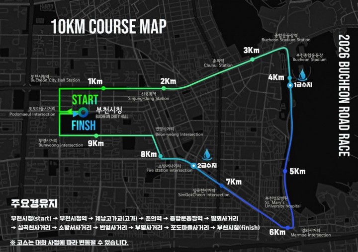 10km 부문: 부천시청 앞을 출발해 시내를 순환하는 국제 공인 코스