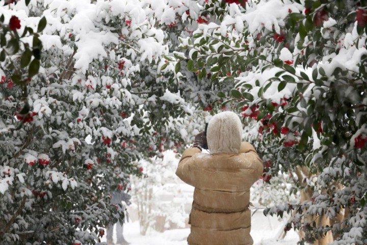 ▲압해 눈 오는 날 애기동백.(사진제공=신안군)