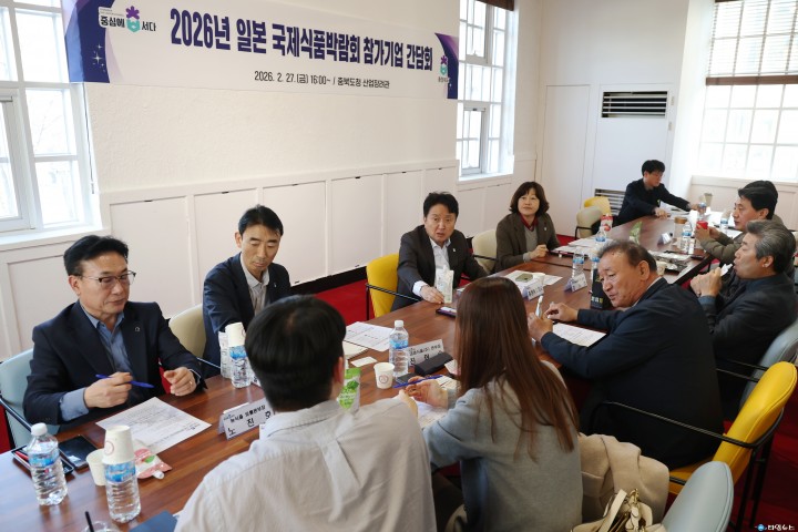 충북도는 27일 도청 산업장려관에서 ‘2026 일본 국제식품박람회(FOODEX JAPAN) 참가기업 간담회’를 열고 수출 확대 전략을 논의했다. 이날 간담회에는 오는 3월 10일부터 13일까지 일본 도쿄에서 열리는 박람회에 참가하는 도내 농식품 기업 8개사가 참석했다.