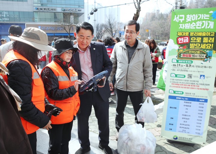 [대전타임뉴스=홍대인 기자] 대전 서구는 18일 관저동 ‘찾아가는 자원순환가게’를 방문해 운영 상황을 점검하고 주민 참여 활동을 진행했다.