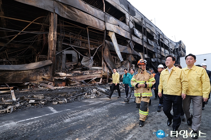 [대전타임뉴스=홍대인 기자] 이재명 대통령이 14명이 숨진 대전 대덕구 문평동 자동차 부품 공장 화재 현장을 찾아 유가족 지원과 사고 수습 대책을 지시했다.