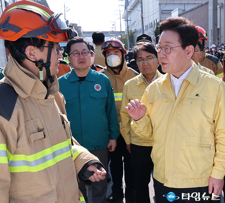 현장을 둘러보던 이 대통령은 “다 녹았다"며 “2차 사고가 나지 않게 잘 챙겨달라"고 당부했다. 화재 확산 원인을 묻자 김승룡 소방청장은 “샌드위치 패널 구조가 화재를 키웠다"고 설명했다.