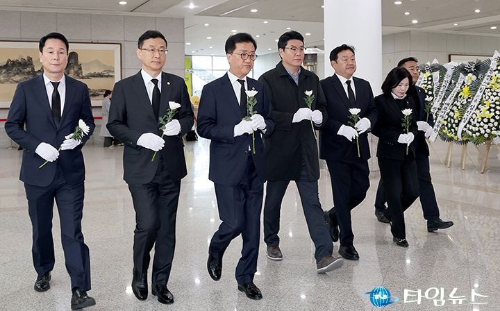 홈 / 정치 정치 조원휘 대전시의회 의장 등 대전시의회, 문평동 화재 분향소 참배 홍대인 기자 htcpone@naver.com 기사입력 2026-03-22 18:56:42 대전 [대전타임뉴스=홍대인 기자] 조원휘 대전시의회 의장이 22일 대전시청 1층 문평동 화재 사고 희생자 합동분향소를 찾아 시의원들과 함께 참배하고 있다. 이날 분향에는 김영삼 부의장과 송인석·이상래·정명국·민경배·이금선 의원 등이 참석했다. 조원휘 의장은 “문평동 화재참사 희생자들을 깊이 애도한다"며 “안전한 대전을 만들기 위해 더 노력하겠다"고 말했다. 홍대인 기자 <저작권자 © 타임뉴스 무단전재 및 재배포 금지> 관련 기사 맹수석 대전시교육감 예비후보 “학생 급식권·노동권 함께 지켜야” 2026.04.30 "정치 책임 물어야" vs "장관·총리 지낸 분이 할 말인가"... 대구시장 선거 '불꽃' 2026.04.30 李 대통령 "노조도 책임의식 가져야… 과도한 요구는 타 노동자에 피해" 2026.04.30 "촉법소년 연령 '만 14세' 유지"... 사회적 대화협의체, 권고안 의결 2026.04.30 민형배, 전남광주통합특별시장 예비후보 등록 2026.04.30 댓글 댓글 기능은 준비 중입니다.