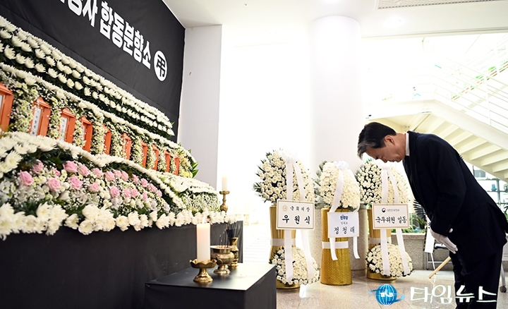 [충남타임뉴스=홍대인 기자] 김태흠 충남도지사는 24일 대전시청 합동분향소를 찾아 자동차부품 공장 화재 희생자들을 조문하고 재발 방지 대책 마련을 강조했다. 김 지사는 분향소에서 헌화와 묵념을 한 뒤 유가족을 만나 위로의 뜻을 전했다. 이번 조문은 대전에서 발생한 화재 참사에 대한 애도와 함께 사고 수습 협력 의지를 밝히기 위해 이뤄졌다. 김태흠 지사는 “희생자들에게 깊은 애도를 표하며 참사 앞에 마음이 무겁다"고 말했다. 이어 “유가족의 슬픔을 헤아릴 수 없지만 진심으로 위로한다"며 “부상자들의 빠른 회복을 바란다"고 밝혔다. 또 “같은 사고가 반복되지 않도록 철저한 원인 규명과 안전 대책이 반드시 필요하다"고 강조했다. 김 지사는 “국민 안전은 국가와 사회가 책임져야 한다"며 “재발 방지를 위한 점검과 대책 마련에 힘쓰겠다"고 말했다.