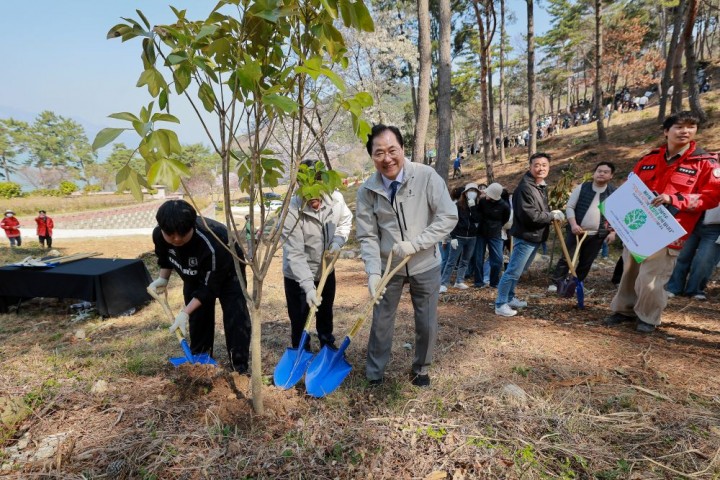 [완도타임뉴스=오현미 기자] 전남 완도군은 ‘제81회 식목일’을 맞아 2일 군청 및 관계 기관이 참여하는 나무 심기와 군민 대상 반려 나무 나눔 행사를 가졌다. 행사는 군민에게 나무 심기의 중요성과 산림의 공익적 가치를 알리고 생활 속 녹색 문화 확산을 위해 마련됐다. 먼저 군외면 삼두리 일원에서 군청, 군의회, 산림조합, 바르게살기운동 단체 등과 함께 완도군 군목인 완도호랑가시와 난대 대표 수종인 황칠나무를 식재했다. 완도를 상징하는 나무 식재로 사계절 녹색 경관을 유지하고 탄소 흡수 기능을 강화함으로써 산림의 상징적·경관적·생태적 가치를 높일 수 있을 것으로 기대된다. 식재 후 오후에는 완도해조류센터 광장에서 군민 800여 명을 대상으로 황칠나무, 철쭉, 애기동백나무 등 2400본의 반려 나무를 나눴다. 황칠나무는 완도 대표 특화 수종으로 활용 가치가 높으며, 철쭉과 애기동백나무는 아름다운 경관을 제공하는 관상 수종으로 군민의 생활 속 녹색 환경 조성에 도움이 될 것으로 보인다.
